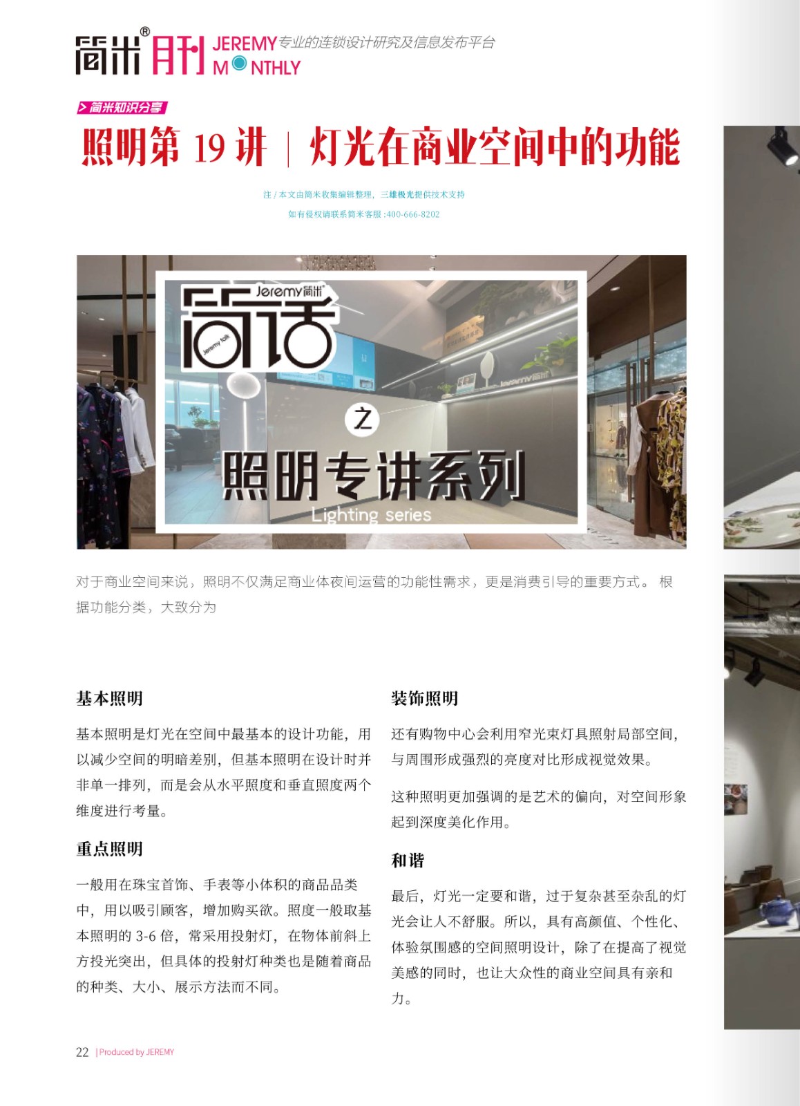 简米知识分享:灯光在商业空间中的功能......详见本期月刊P22-13