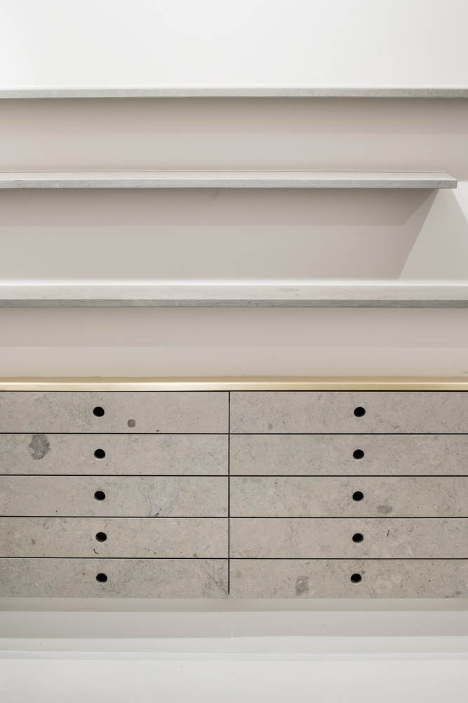 该SI设计位于不锈钢天花板变成一面巨大的倒镜,吸引用户用户探索真实的不同视角。用Blue-ataíja石灰岩的构造来作整个项目的统一材质。