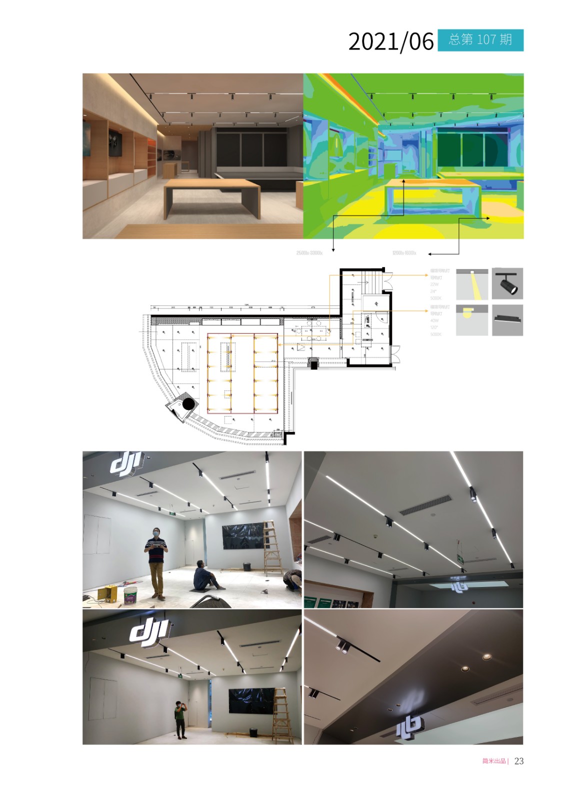 简米知识分享:大疆店铺以适当的照度舒适的光影作为整体照明设计总原则,分成了四级照明...详见本期月刊P22-23