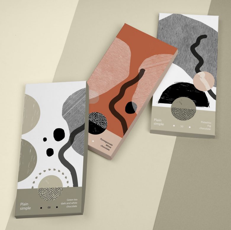 该品牌设计项目是Plain Simple的VI设计,Plain Simple巧克力是一家经营巧克力的公司,这个VI设计融合了鲜艳的色彩和大胆的图案,灵感来自和谐与组织混乱的平衡。