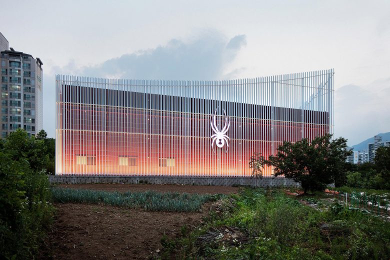 该SI设计向上伸展的管道结构的非典型形状强调了显示蜘蛛网的立面设计。同时还可以在视觉上显示品牌的强烈形象。这是自然友好的,不会破坏周围的环境。该SI设计易于识别,因此可以传递Spyder Haven的品牌形象。